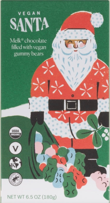 Very Limited item from SJAAKS! The beloved chocolate maker is no longer in business but we were able to get a few of the Vegan Santa's! Get the last of the Melk Chocolate chocolate Santa's filled with organic, vegan gummy bears!